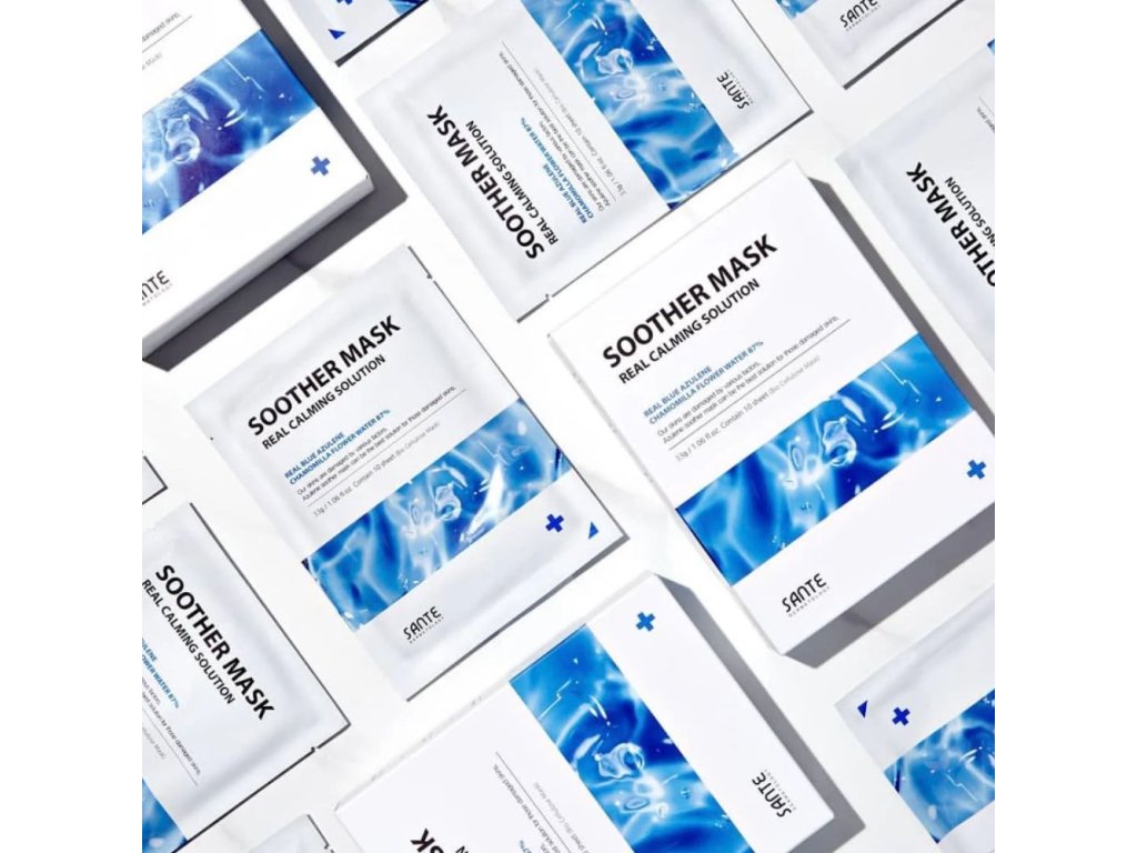 Dr. SANTE Azulene Soother Mask 33 g je biocelulózová pleťová maska, která poskytuje rychlé zklidnění a hlubokou hydrataci pokožky. Esence masky je založena z 87 % na heřmánkové květové vodě místo obyčejné vody, což pomáhá okamžitě uklidnit podrážděnou pleť a dodat jí výživu. Intenzivní azulenové esence zajišťuje dostatečné zklidňující a výživné účinky, zatímco biocelulózový plátýnek, často používaný i při léčbě popálenin, dokonale přilne k pokožce a zajišťuje optimální přenos aktivních látek do pleti. Komplex 11 typů kyseliny hyaluronové a aktivace aquaporinů dopravuje hydratující molekuly do hlubších vrstev pokožky pro dlouhotrvající vláhu a pocit komfortu, což z masky činí ideální produkt pro suchou, dehydratovanou a podrážděnou pleť.